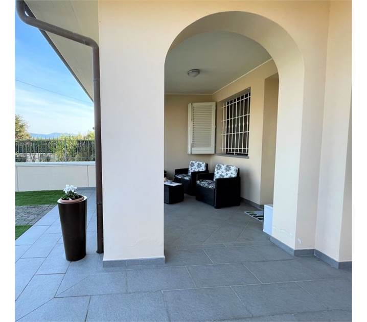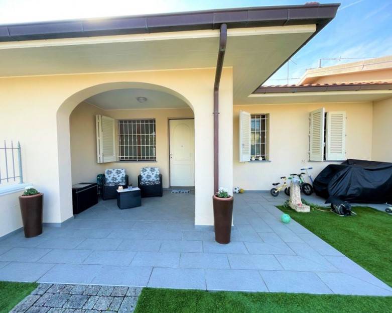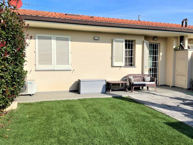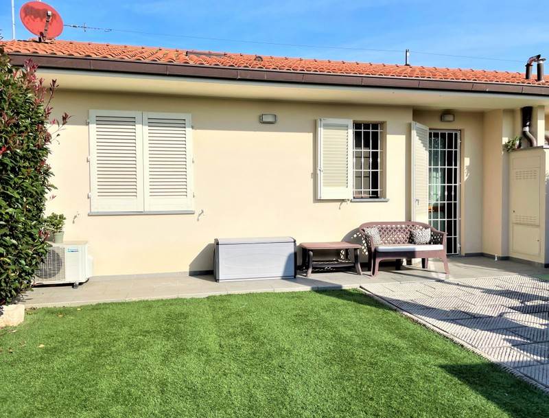 LARCIANO -Periferia- Bellissima villetta a schiera di recente costruzione su unico livello totalmente indipendente. Abitazione mq. 80, loggia mq. 10, giardino mq. 150 circa. L'immobile libero su due lati con resede e giardino di pertinenza esclusivo è così composto: ingresso in ampio soggiorno con cottura a vista, disimpegno, bagno, ripostiglio e due camere. Dalla zona giorno, oltre che dall'ingresso principale, si accede al giardino. Il giardino è completamente recintato con muretto e ringhiera zincata (come si vede in fotografia), inoltre è dotato di cancellino pedonale e accesso carrabile per entrare e parcheggiare comodamente due auto all'interno della proprietà. Bellissimi gli spazi esterni, resede con loggia all'ingresso della casa e giardino sul retro dove poter gustare aperitivi o cene, anche in compagnia, nelle serate d'estate. La villetta è dotata di impianto aria condizionata, inferriate, zanzariere a tuti gli infissi, automatizzazione cancello carrabile. Completa la proprietà un bel sottotetto accessibile da scala retrattile interna. Ottime rifiniture. Per motivi di privacy l'indirizzo in pubblicità non corrisponde a quello reale, per ulteriori informazioni, chiamare l'agenzia e chiedere del Riferimento: B/972