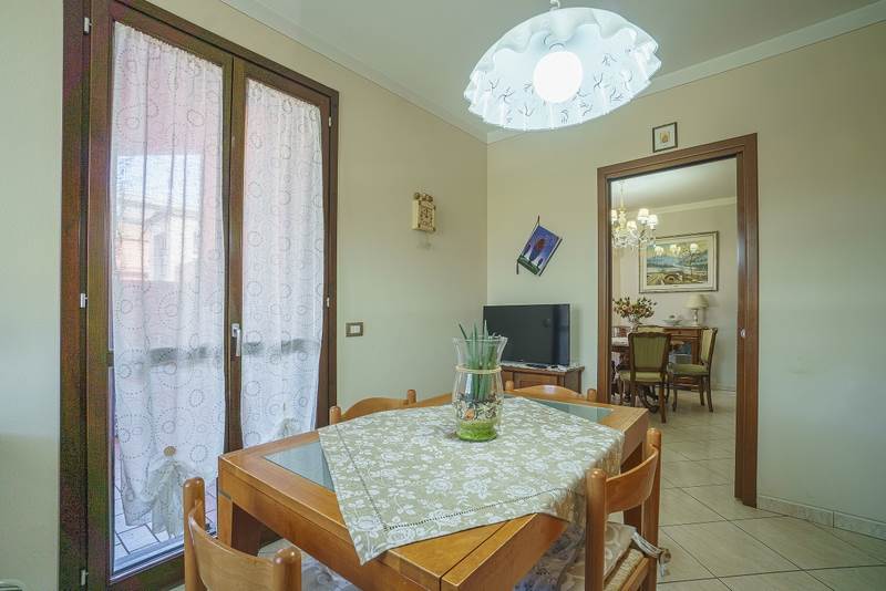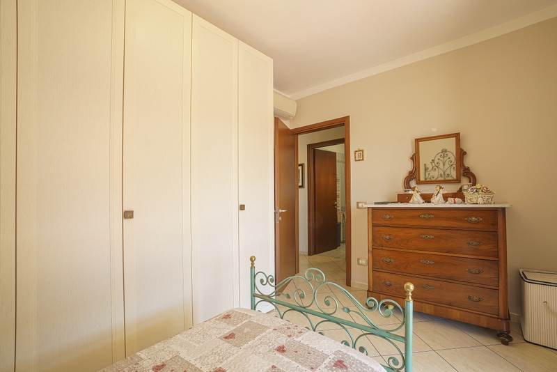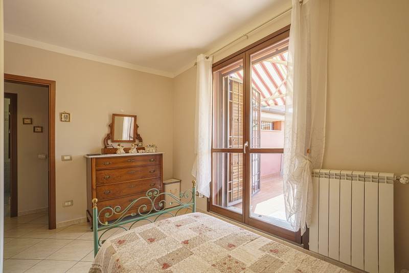 L'appartamento è dotato di portoncino blindato, predisposizione per l'impianto allarme, aria condizionata, addolcitore per l’acqua, infissi in legno con doppio vetro, zanzariere, tende da sole ed inferriate.