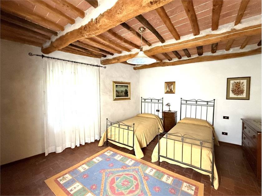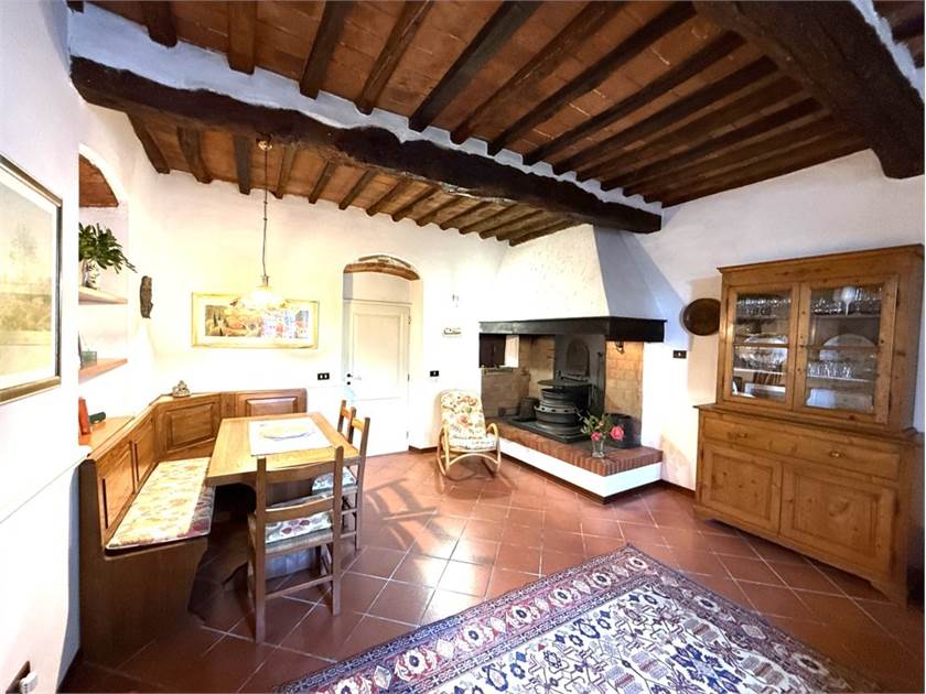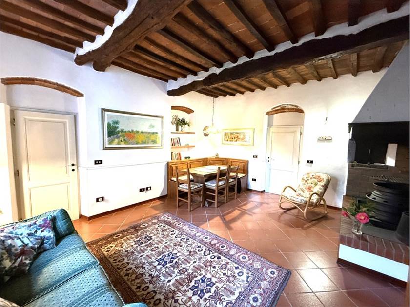 A pochi chilometri dal centro del paese, in borgo caratteristico, lontano dal traffico e dai rumori, si vende questo bellissimo terratetto libero su tre lati. L'immobile è stato ristrutturato conservando tutte le caratteristiche tipiche dei rustici toscani. Al piano terra troviamo: ingresso, cucina abitabile con accesso diretto al porticato ed al giardino, ripostiglio sottoscala, soggiorno con camino, ulteriore zona living multifunzionale, vano attualmente usato come lavanderia e scala che conduce al piano superiore. Qui troviamo un ampio disimpegno adibito dagli attuali proprietari a soggiorno/studio, tre camere matrimoniali, 2 bagni, 2 ripostigli e scala per accedere al piano sottotetto composto da due ampi vani con altezze abitabili. Completano la proprietà il garage di circa mq. 60 ed il grande giardino esclusivo di circa mq. 2180 con 50 piante di olivo. Gli spazi esterni, ben distribuiti, garantiscono tranquillità e riservatezza, ideali per organizzare cene estive ma anche per conversazioni e momenti rilassanti con amici. Per motivi di privacy l’indirizzo in pubblicità, non corrisponde a quello reale; per maggiori informazioni chiamare l’agenzia immobiliare e chiedere del riferimento F/1018