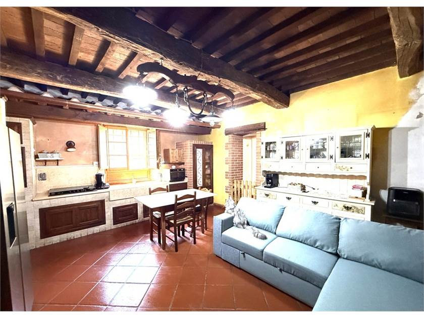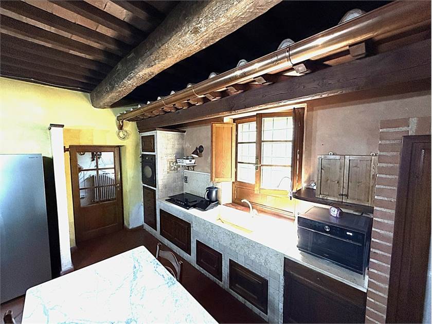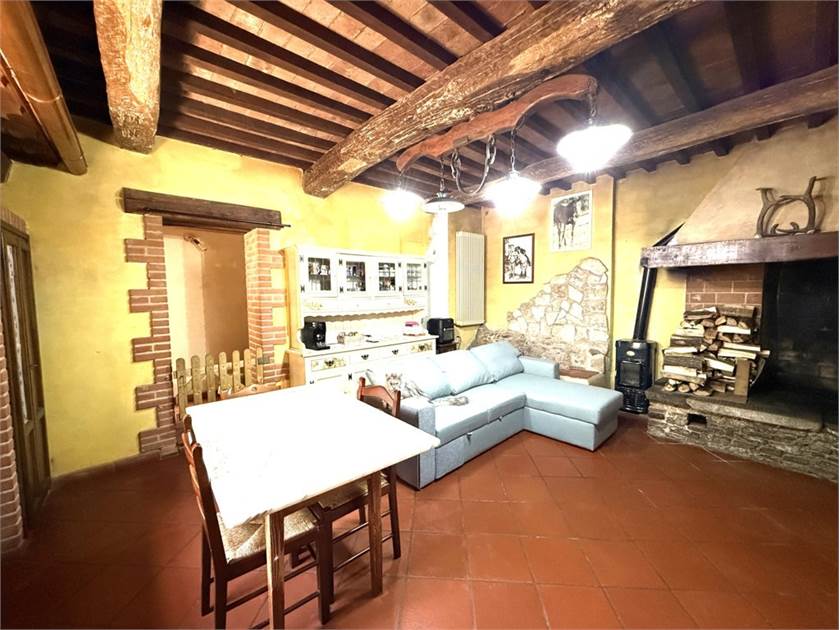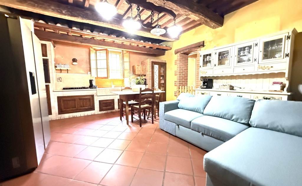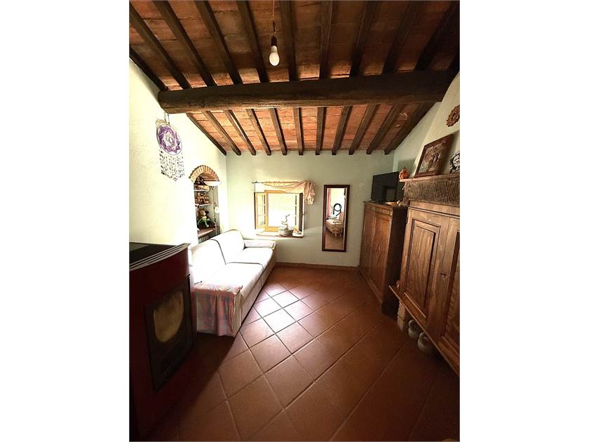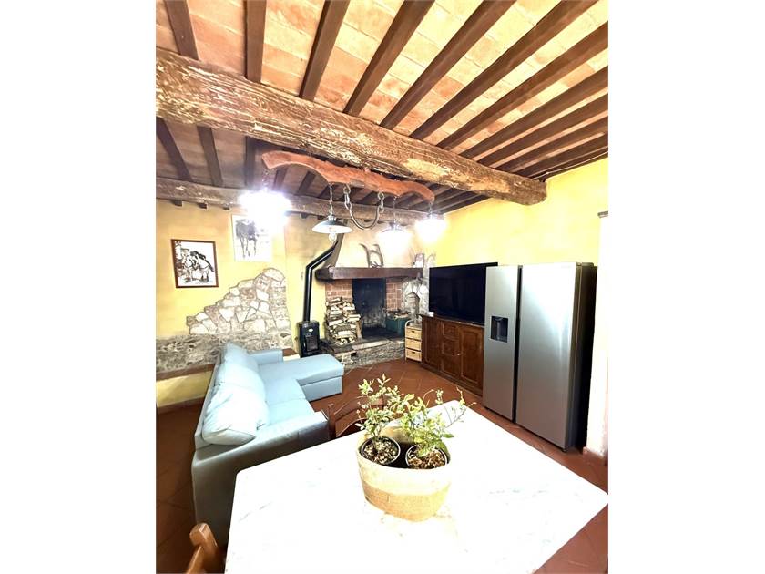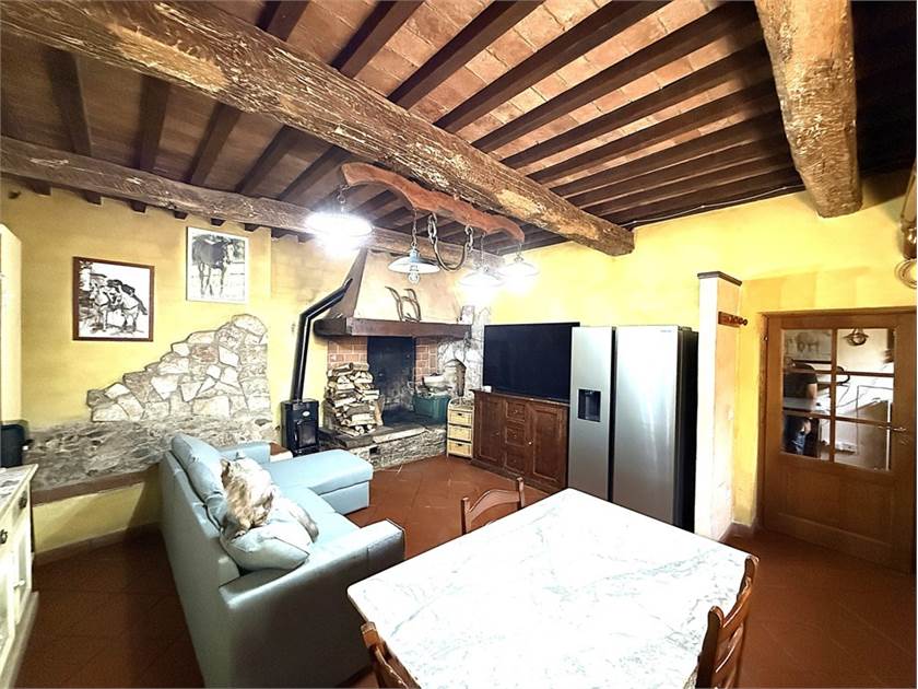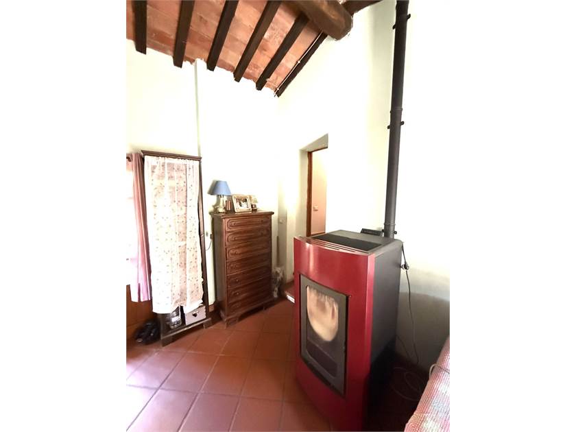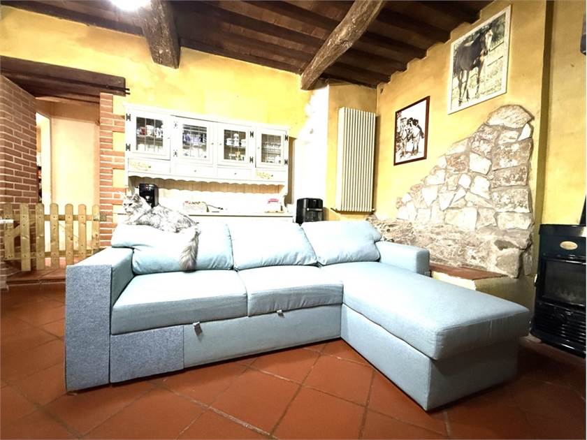 L'edificio si dispone su due livelli: al piano terra oltre all'accogliente soggiorno con cucina a vista impreziosito da un camino e un forno a legna, troviamo: disimpegno, lavanderia e bagno. Il primo piano ospita la zona notte con tre camere da letto, un secondo bagno e un ripostiglio.