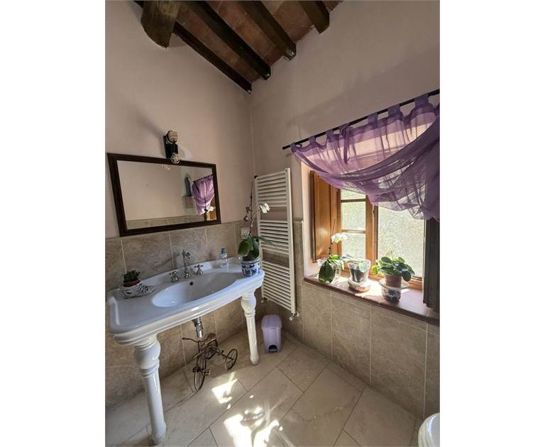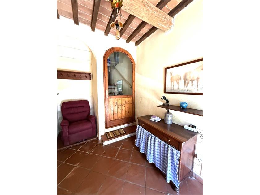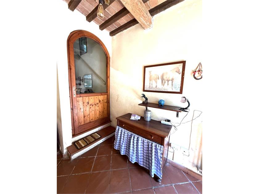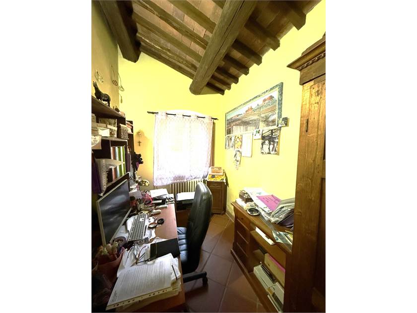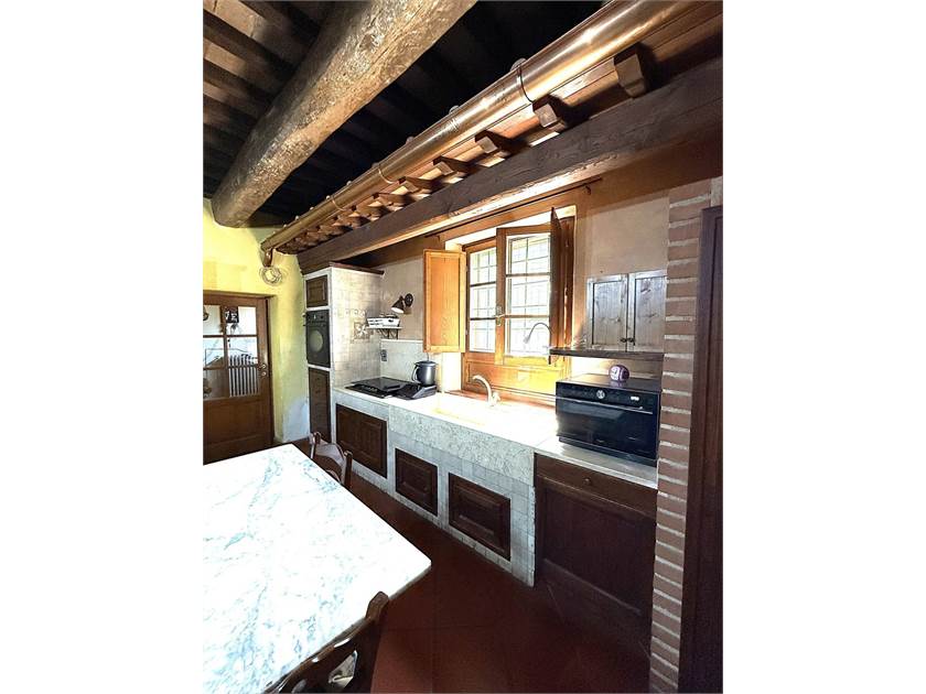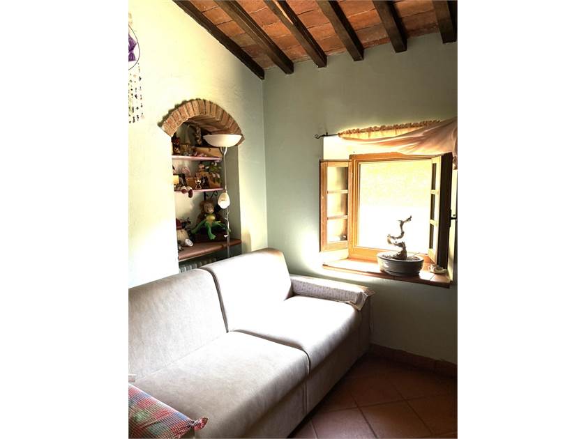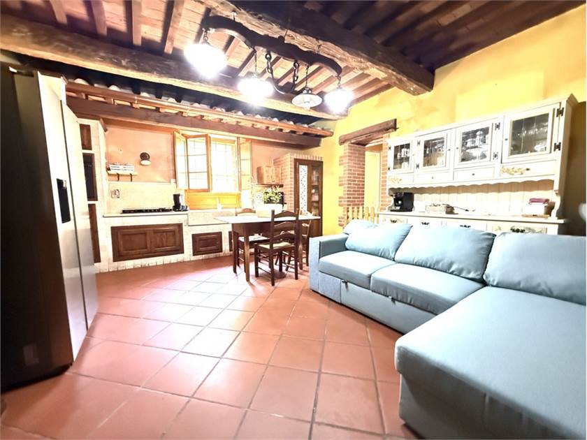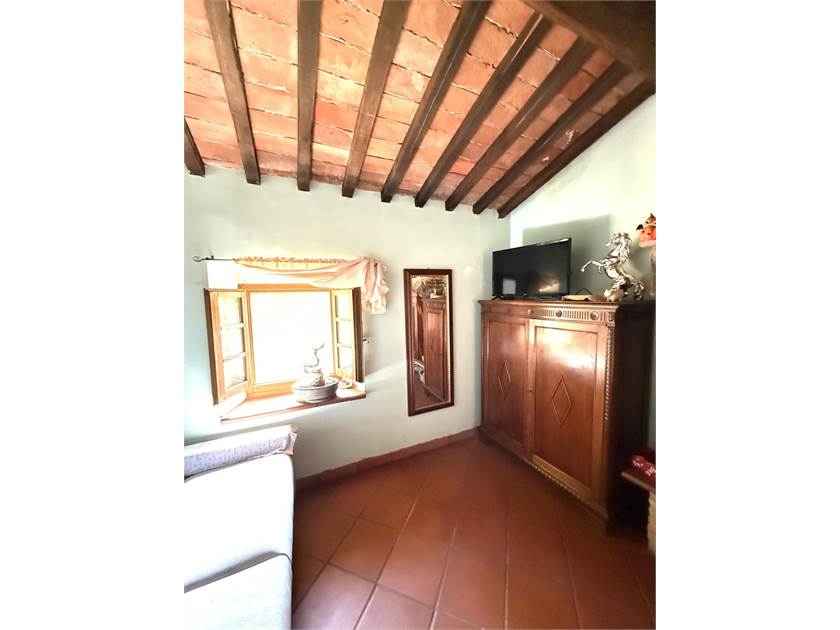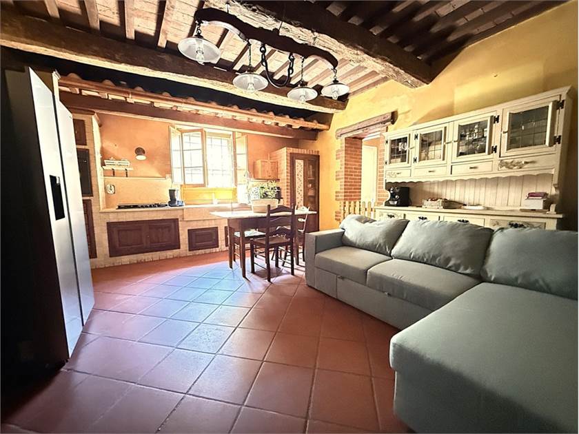 L'edificio si dispone su due livelli: al piano terra oltre all'accogliente soggiorno con cucina a vista impreziosito da un camino e un forno a legna, troviamo: disimpegno, lavanderia e bagno. Il primo piano ospita la zona notte con tre camere da letto, un secondo bagno e un ripostiglio.