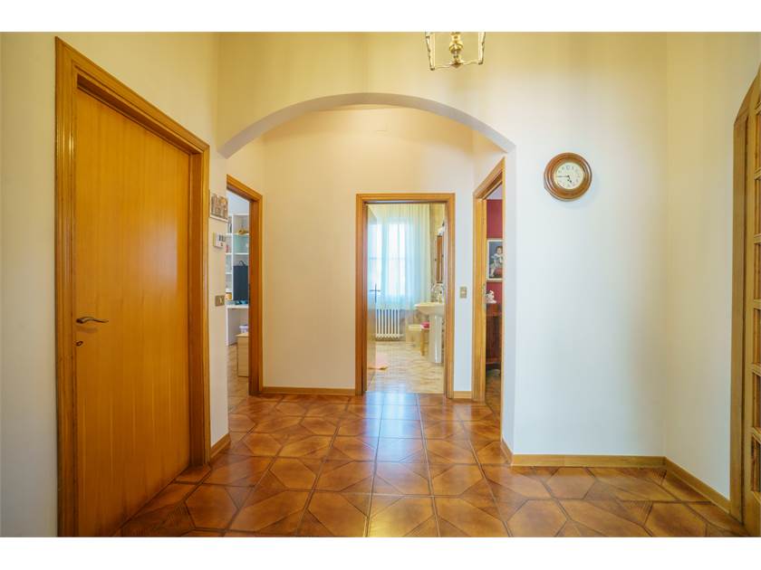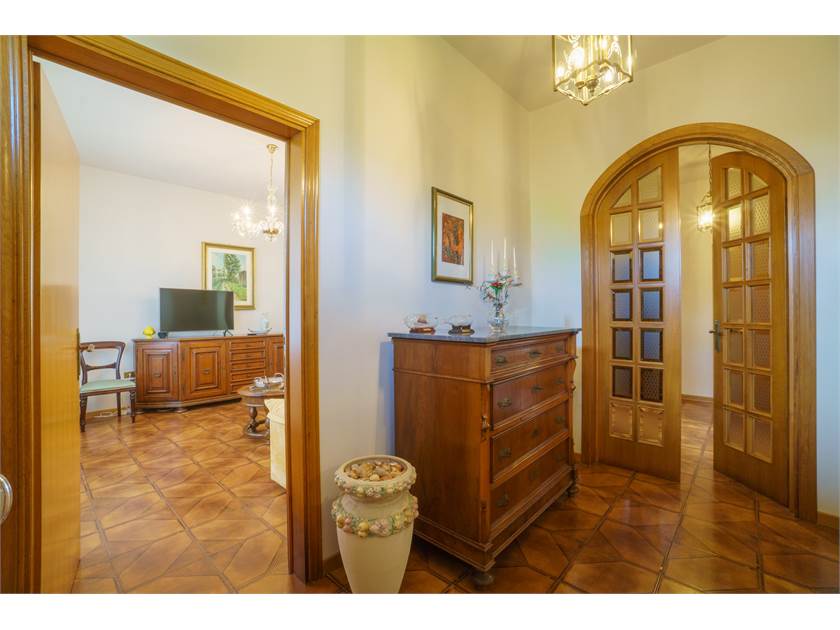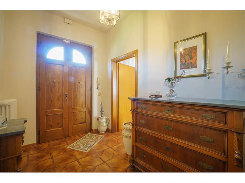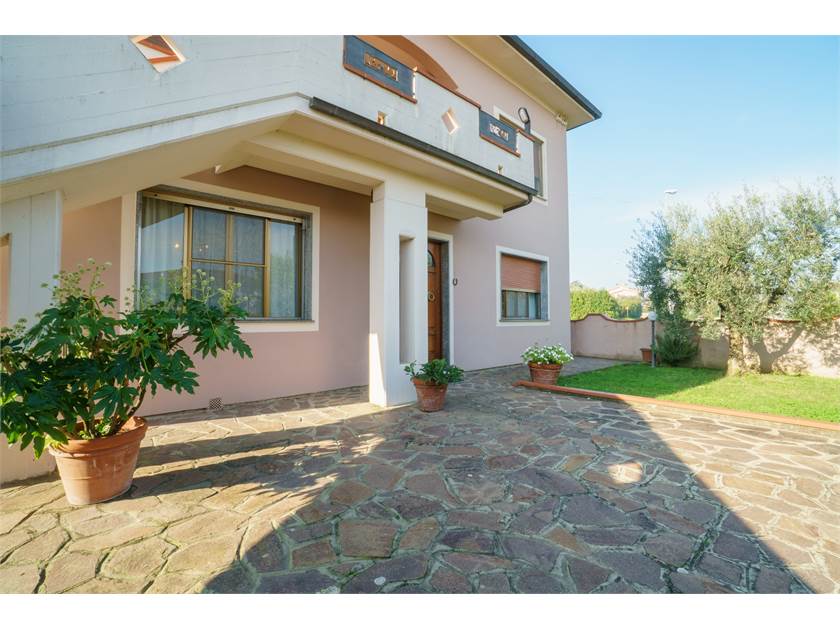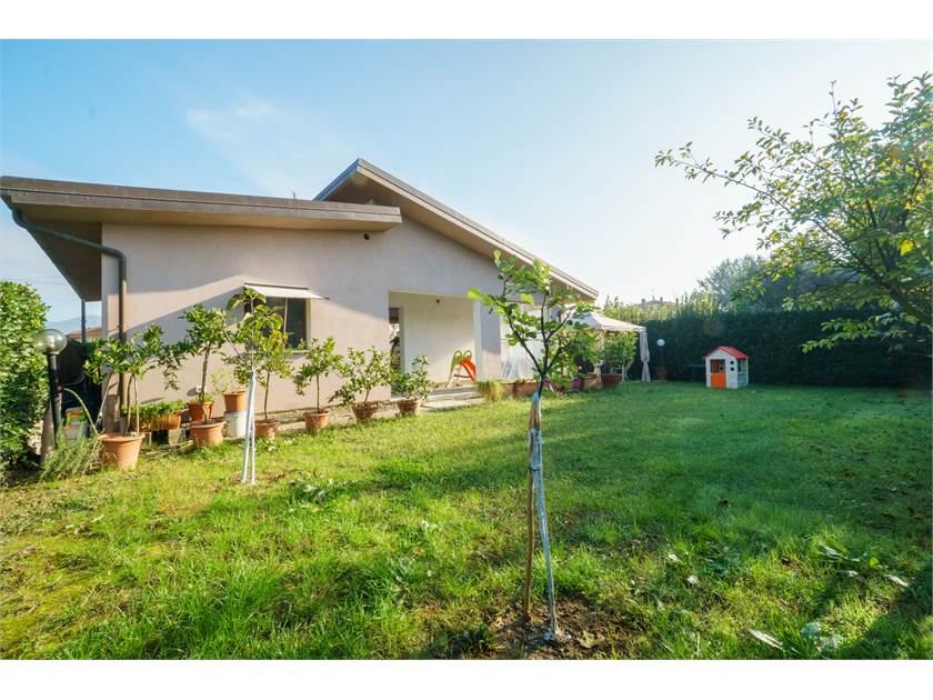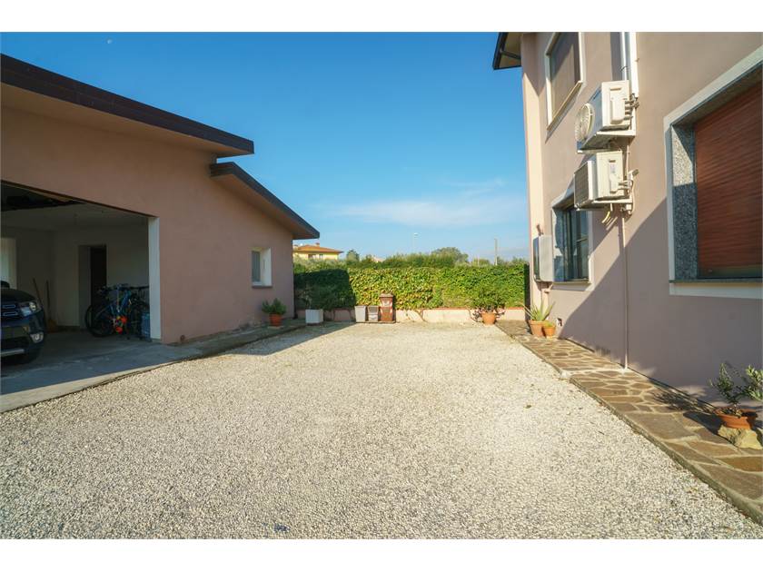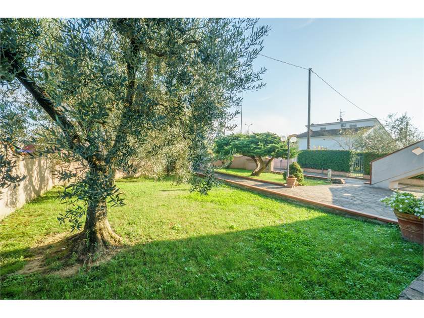 Di fronte all’ingresso di servizio è presente un garage esclusivo di oltre 30 mq, completo di locali di deposito, mentre al piano interrato si trova una cantina di circa 30 mq, utile come spazio accessorio aggiuntivo. La proprietà, libera su quattro lato, è circondata da un giardino diviso tra fronte e retro per un totale di circa 450 mq. È inoltre presente un pozzo regolarmente denunciato, utilizzabile per l’irrigazione e per usi domestici non alimentari.