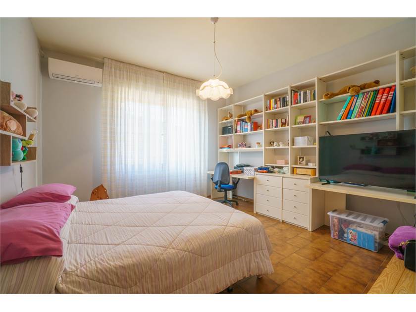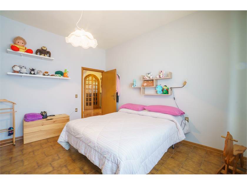 La parte notte comprende due camere matrimoniali particolarmente ampie e una terza stanza oggi organizzata come guardaroba. Il bagno è dotato di finestra e vasca.