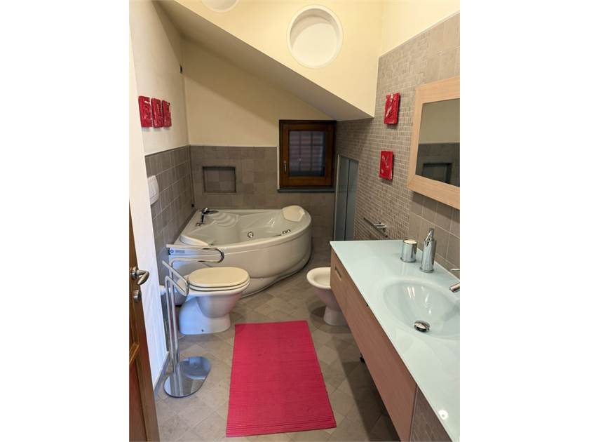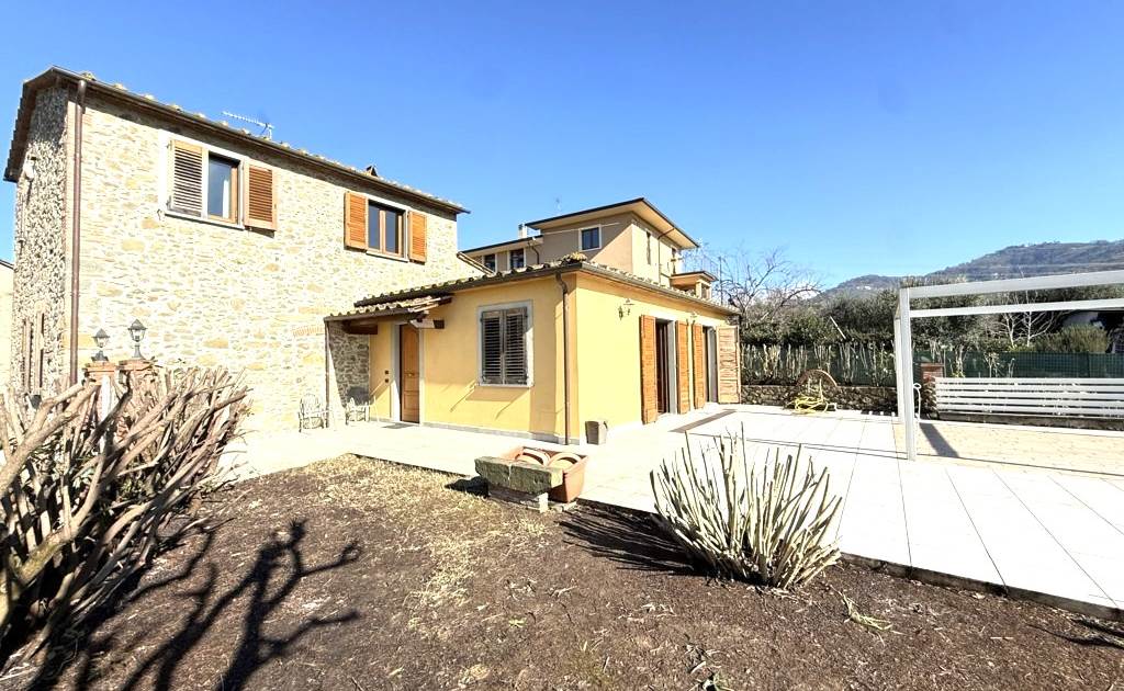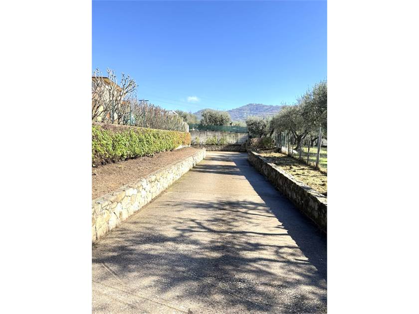 Scopri questa meraviglia, affiancata da un bel giardino e da un ampio resede esclusivo, con accesso carrabile, che offre la possibilità di parcheggiare le auto nella proprietà e che conduce a due garage comunicanti, ciascuno di mq. 30, entrambi dotati di porte basculanti automatizzate.