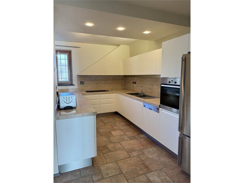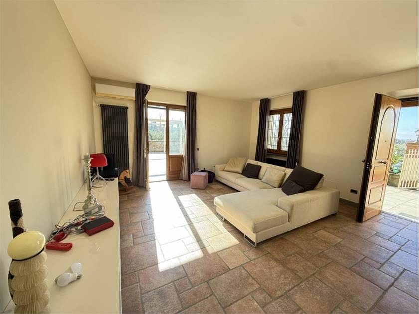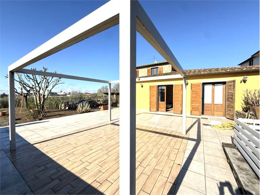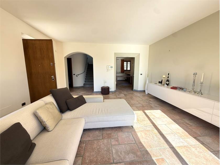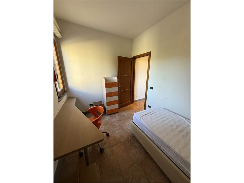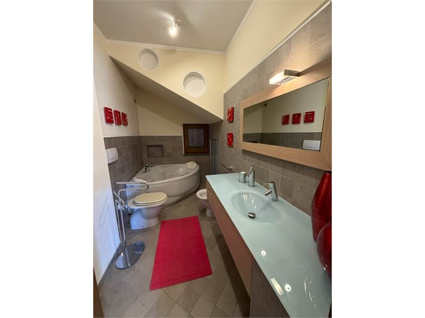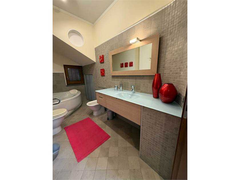 Il piano terra accoglie un ampia zona living con accesso diretto all’esterno, dove troviamo una pergola perfetta per momenti di condivisione e di benessere, una grande cucina abitabile con penisola, un bagno con vasca idromassaggio, una cameretta ed uno studio oltre ad una comoda stanza adibita a lavanderia. All’occorrenza la cameretta e lo studio, unendoli possono diventare una bellissima camera matrimoniali. Il primo piano accoglie due camere, disimpegno e bagno. Completa la proprietà un terreno di circa mq. 5600, con 50 piante di olivo. La casa è dotata di impianto di allarme, zanzariere, addolcitore, impianto di condizionamento, impianto di aspirazione centralizzata. Per motivi di privacy l’indirizzo in pubblicità non corrisponde a quello reale, per maggiori informazioni chiamare l’agenzia e chiedere del RIF S1013