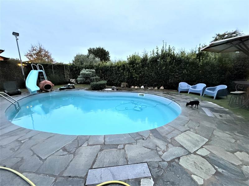 In zona tranquilla, vicino a tutti i principali servizi, villetta a schiera libera su tre lati con resede esclusivo. L'immobile è così composto: al piano terra: ingresso dal resede antistante la via principale, studio/cameretta, soggiorno (usato dagli attuali proprietari come camera matrimoniale), cucina abitabile con accesso al resede esclusivo, bagno finestrato e ripostiglio. Al primo piano: disimpegno, due camere matrimoniali, bagno finestrato ed ampio vano (attualmente usato come locale di sgombero) da adibire ad eventuale altra camera. Adiacente alla casa con possibilità di poterlo collegare direttamente alla zona pranzo, grande locale di sgombero/ garage con altezza media mt. 3,50. Valore aggiunto alla proprietà una bellissima piscina interrata nel resede esclusivo. L'immobile è già predisposto per essere diviso in due unità indipendenti. Per motivi di privacy l'indirizzo in pubblicità non è preciso ma indicativo, per maggiori informazioni chiamare l'agenzia e chiedere del riferimento C/998